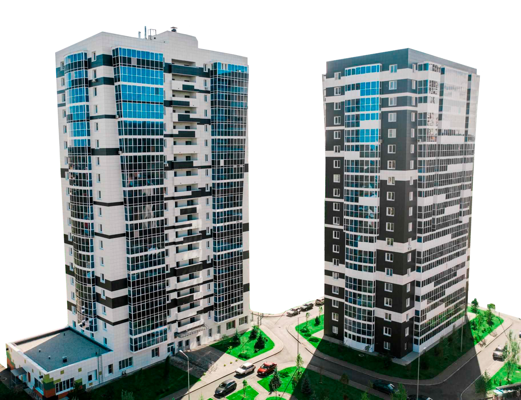 Есть наземная парковка, в планах намечена подземная многоуровневая. В каждом подъезде есть комнаты для колясок, велосипедов и лыж. Управляющая компания предлагает доп. услуги