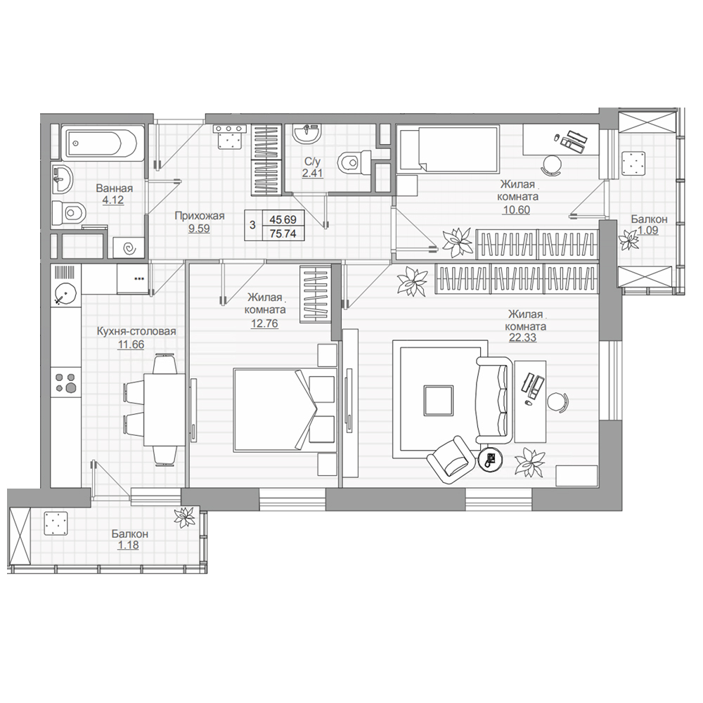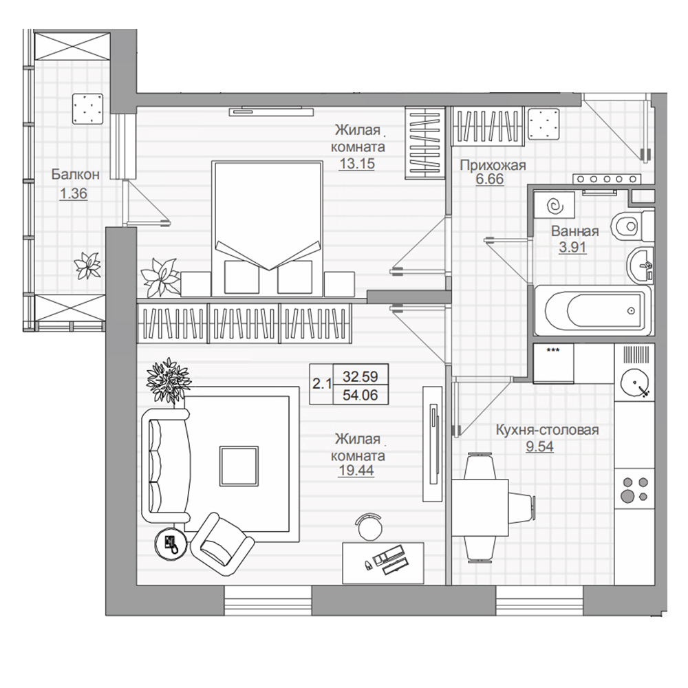 В квартирах новых очередей большие окна, пониженный уровень подоконника на 60 см от пола — всегда светло и уютно. Все планировки рассчитаны на то, чтобы каждый метр шёл на пользу.